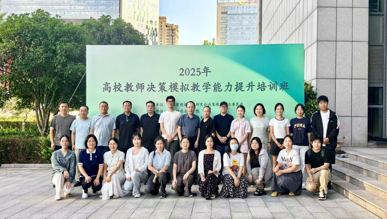 图2 2025年高校教师决策模拟教学能力提升培训班现场及我院教师代表参训合影