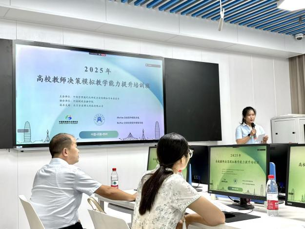 本次培训聚焦前沿教学理念与技术创新,通过专家理论讲授、高仿真模拟实操等多种形式,深入剖析了决策模拟在教学中的应用场景与设计方法。参训教师在沉浸式体验中展开热烈研讨,思维碰撞不断激发新的教学灵感。展刘洋老师表示,“培训内容极具前瞻性和实操性,对革新传统课堂教学、激发学生主动性提供了全新思路和有效工具。”李玲老师谈到,“跨校交流获益匪浅,对如何构建‘以学生为中心’的决策实践课堂有了更清晰的规划,信心倍增。”