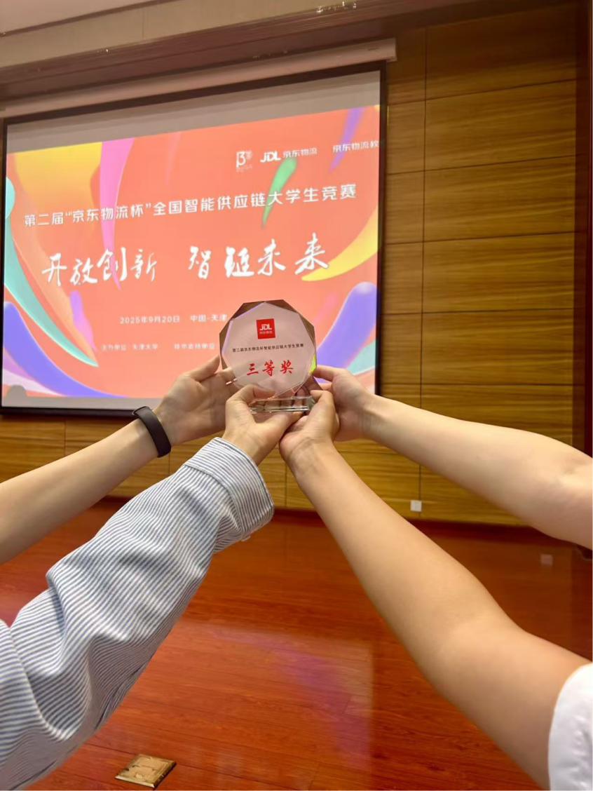 本届大赛以“开放创新、智链未来”为主题,自2025年5月启动以来,受到了社会各界的广泛关注。赛事历时4个月,共收到来自全国30个省市70所本科院校的132支代表队报名参赛。经过初赛和网络评审,最终有70支队伍入围全国总决赛。在纪方老师的指导下,yl6809永利官网物流与供应链管理系学生冀雨涵、赵佳丽、郭芷杉、杜晶阳、袁恩祈组成的“没思路也能队”团队的作品《成本与次日达平衡的二级数智化仓储网络》荣获全国三等奖。