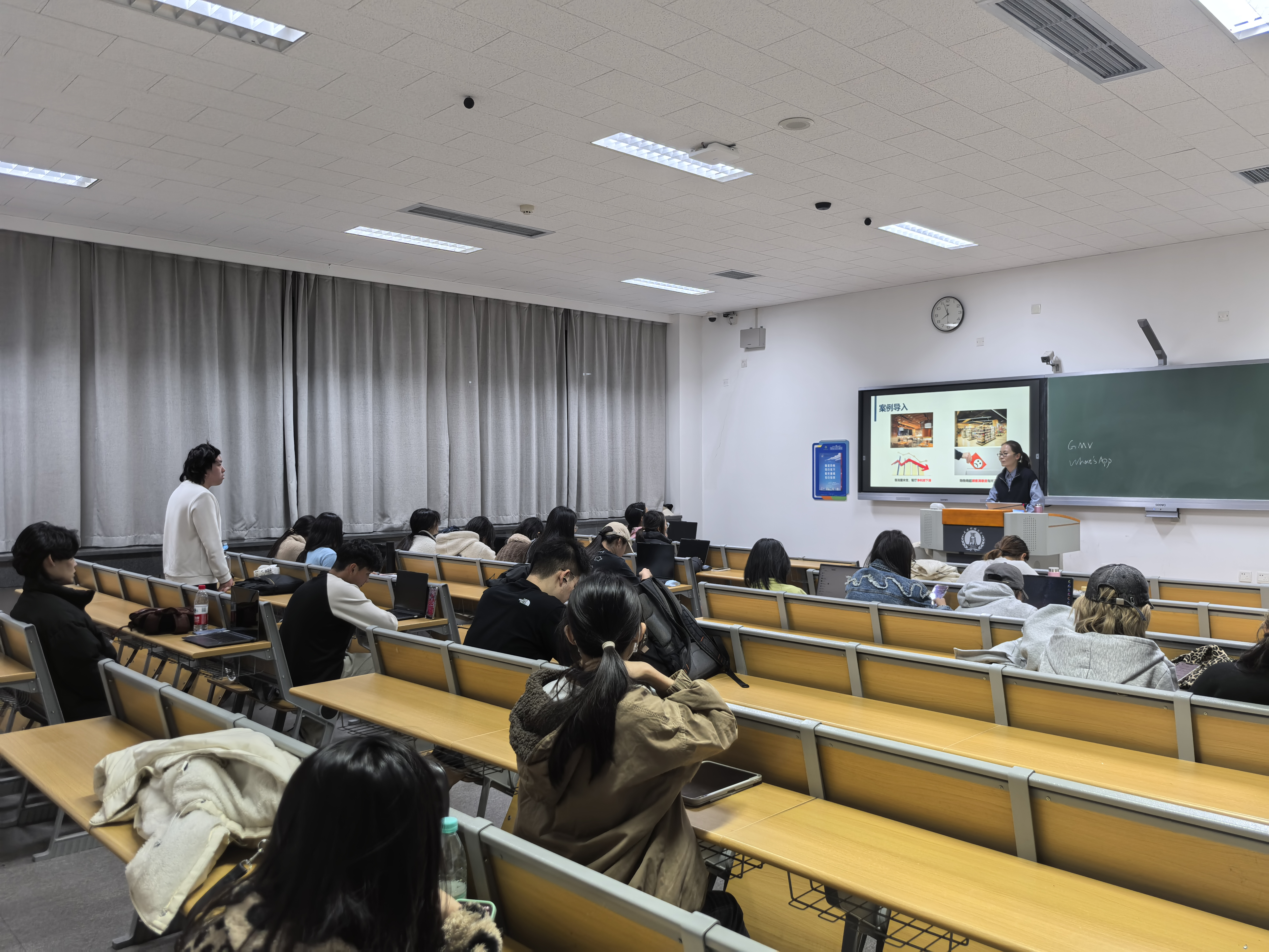 介绍完企业实践难题后,李妹老师又带领学生详细拆解了两份全国大学生市场调研大赛一等奖作品,从选题的巧妙切入,到模型的严谨构建,再到结论的商业价值,都进行了深入讨论。